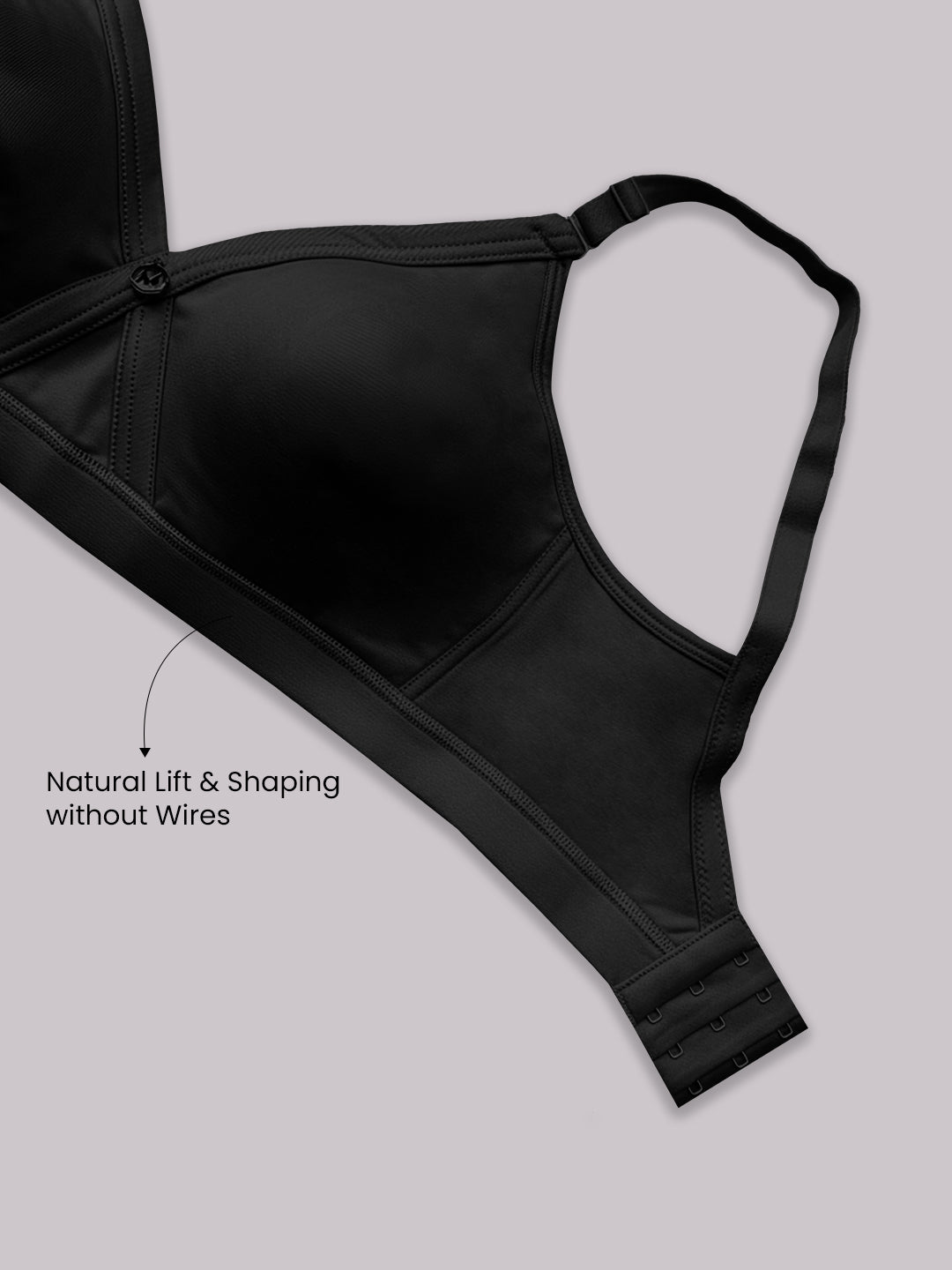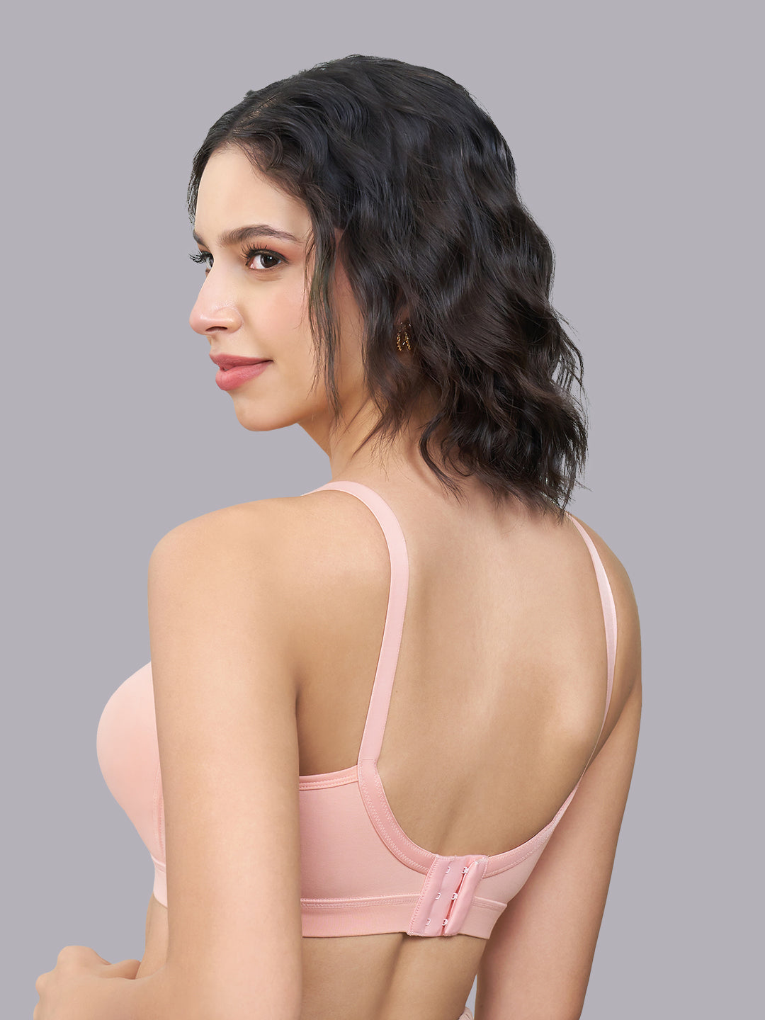 Crafted from rich cotton lycra fabric, this bra feels soft breathable and gentle on the skin making it ideal for long hours of wear. The non padded seamless cups feature double layering to deliver a smooth finish under outfits while offering a natural comfortable feel. With broad wings and a secure 3-hook back closure, this bra ensures improved back support stability and a snug fit.