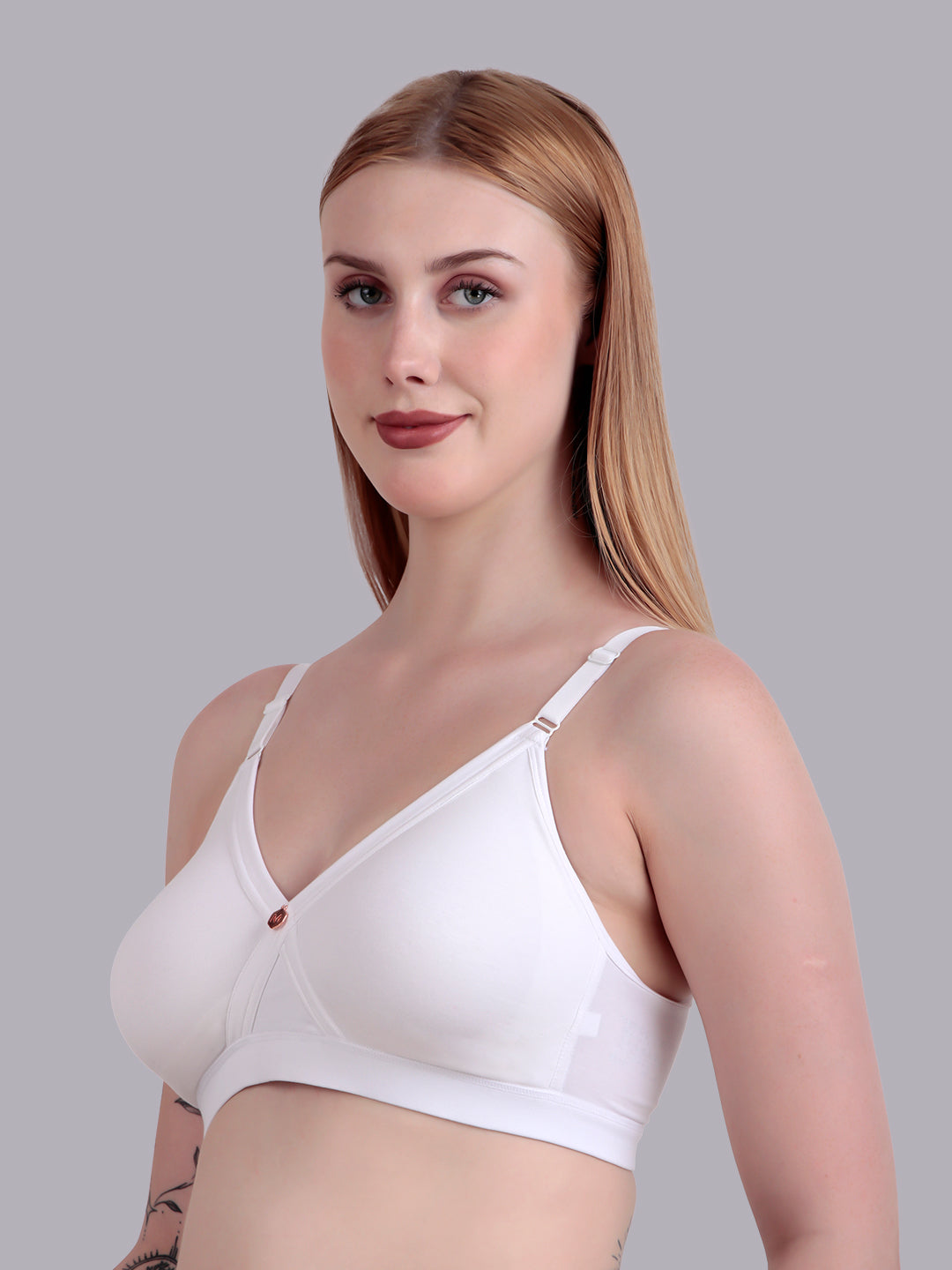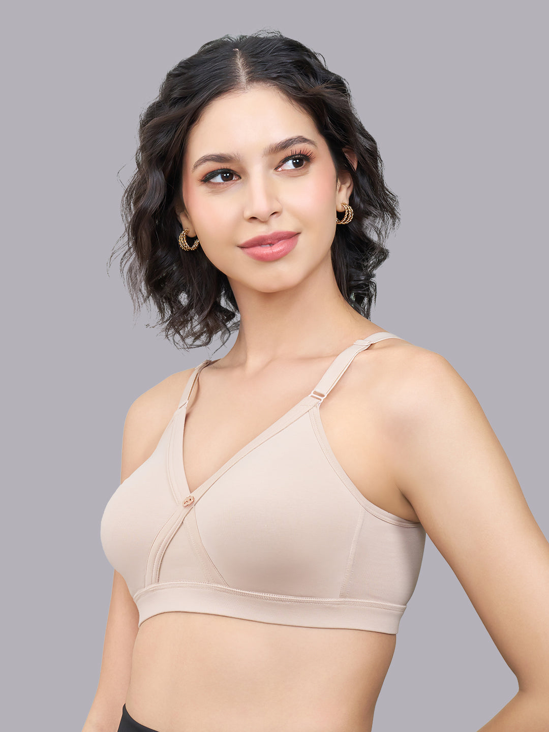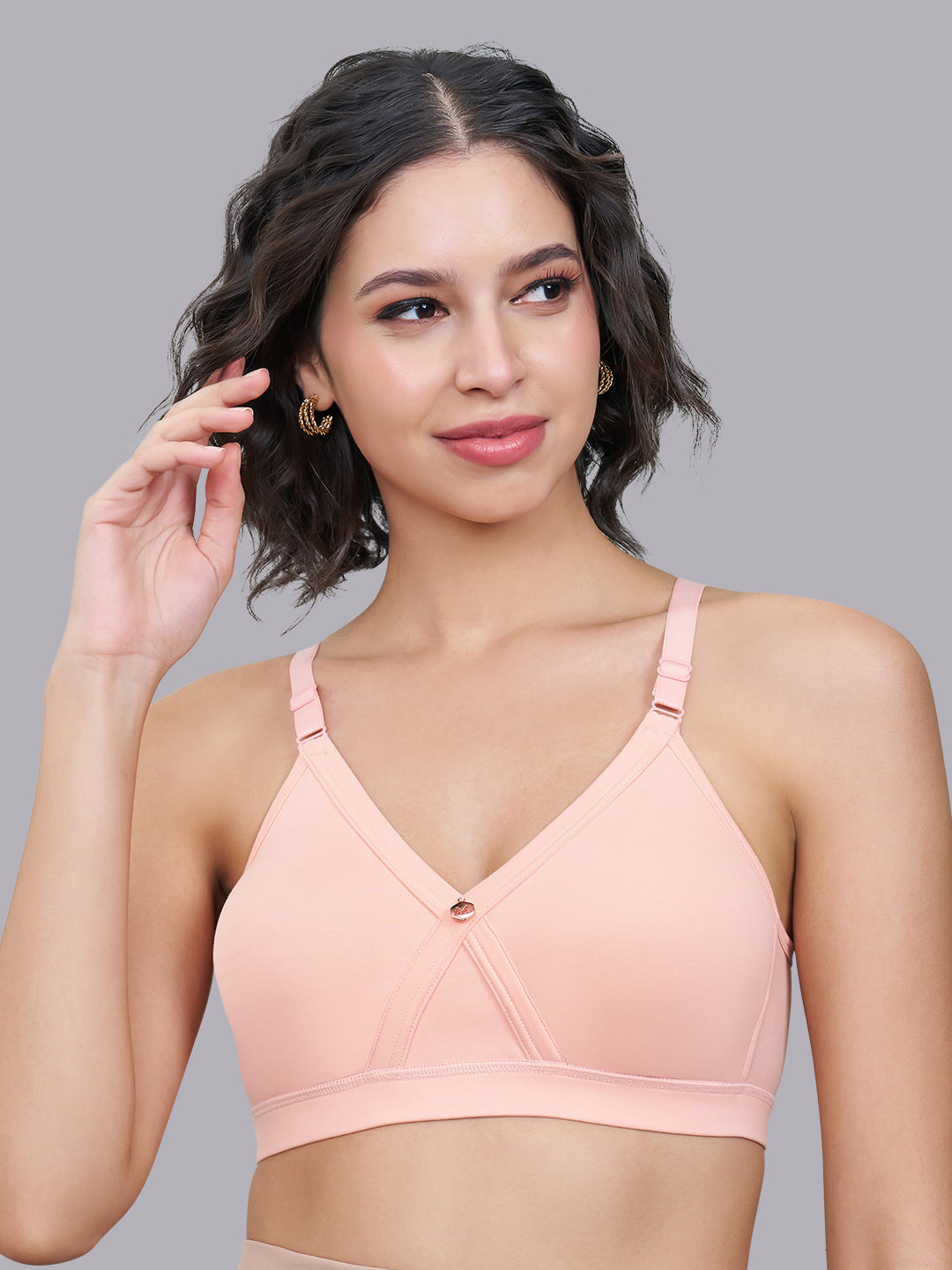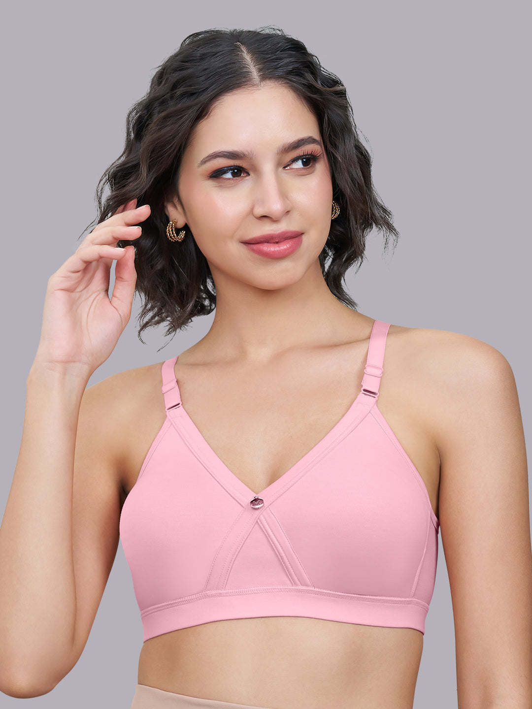 Experience everyday comfort and reliable support with this wire free full coverage bra for women, thoughtfully designed for daily wear. The cross front panel with inner stitching enhances shaping and provides better support while maintaining a natural silhouette.